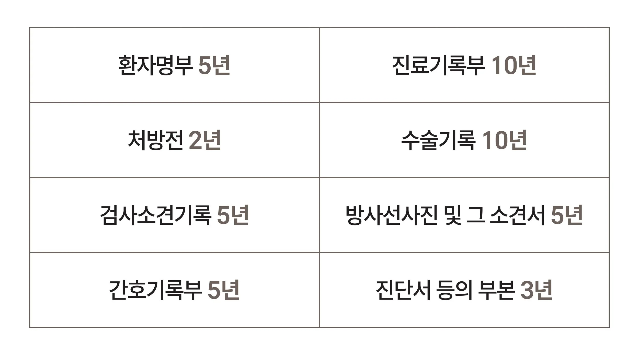 의료법에 준한 보관시일이 지났을 경우 내부 방침 및 정보보호 사유에 따라 파기됩니다.