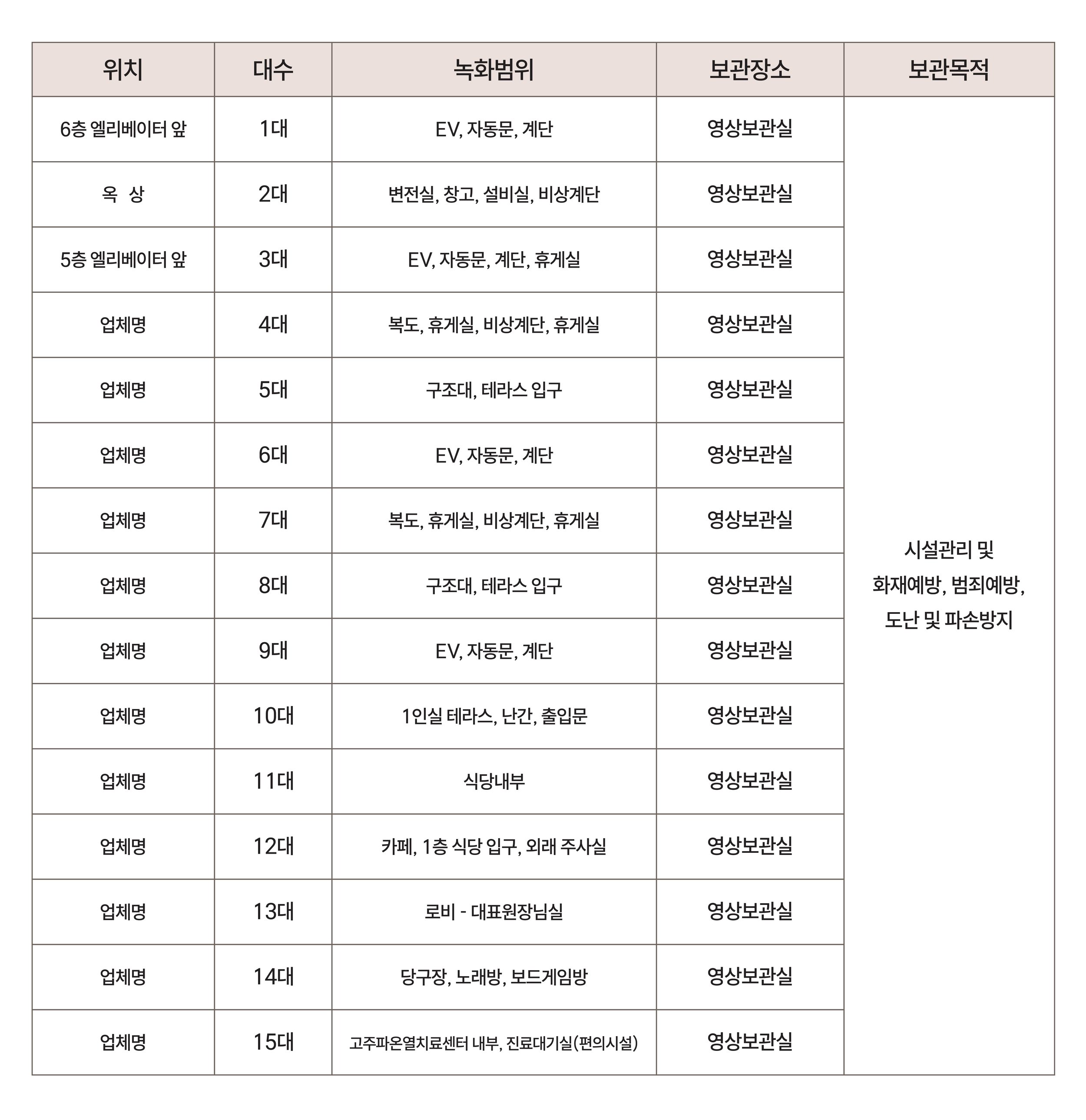 병원은 아래와 같이 영상정보처리기기를 운영, 관리하고 있습니다.